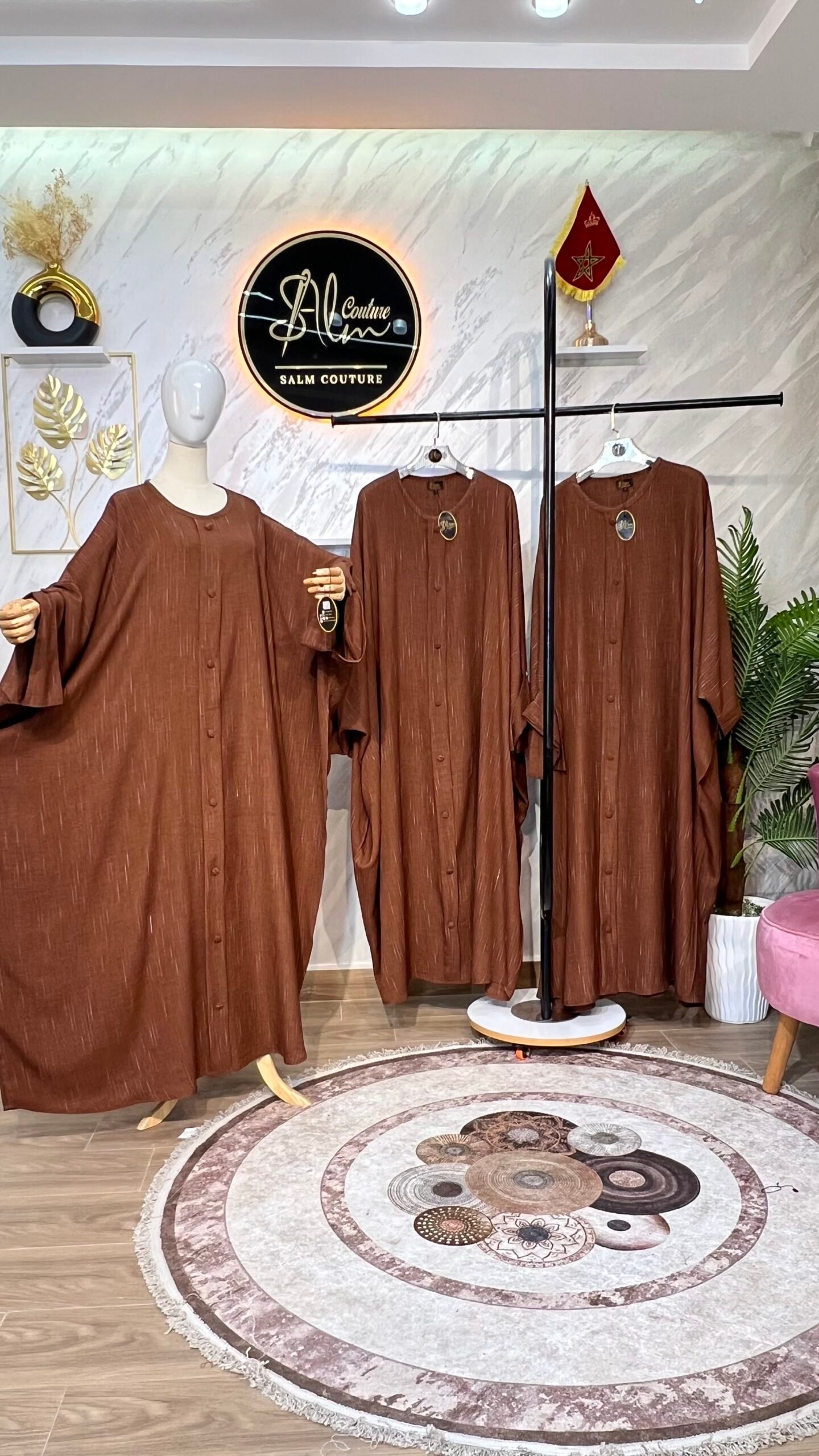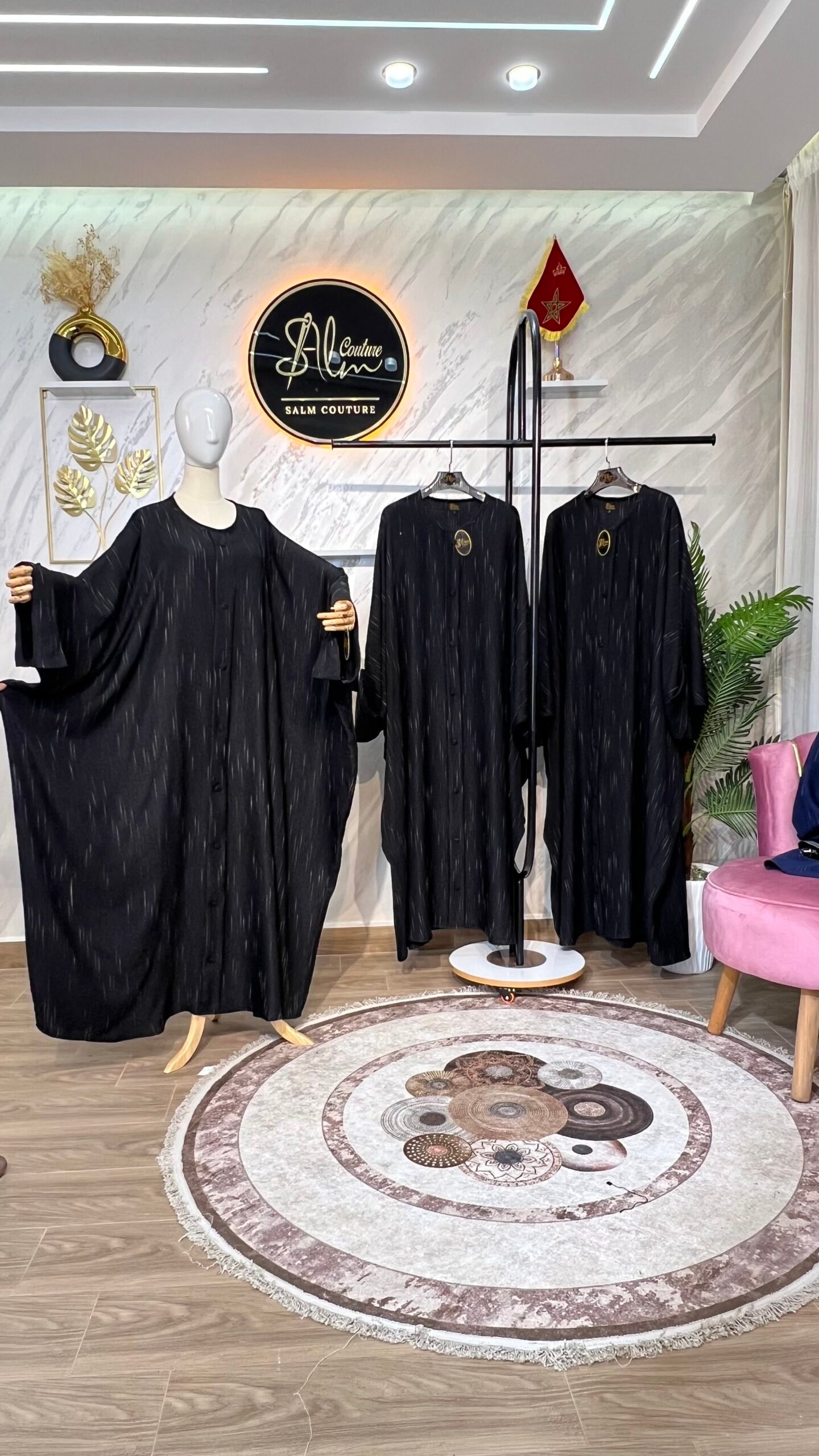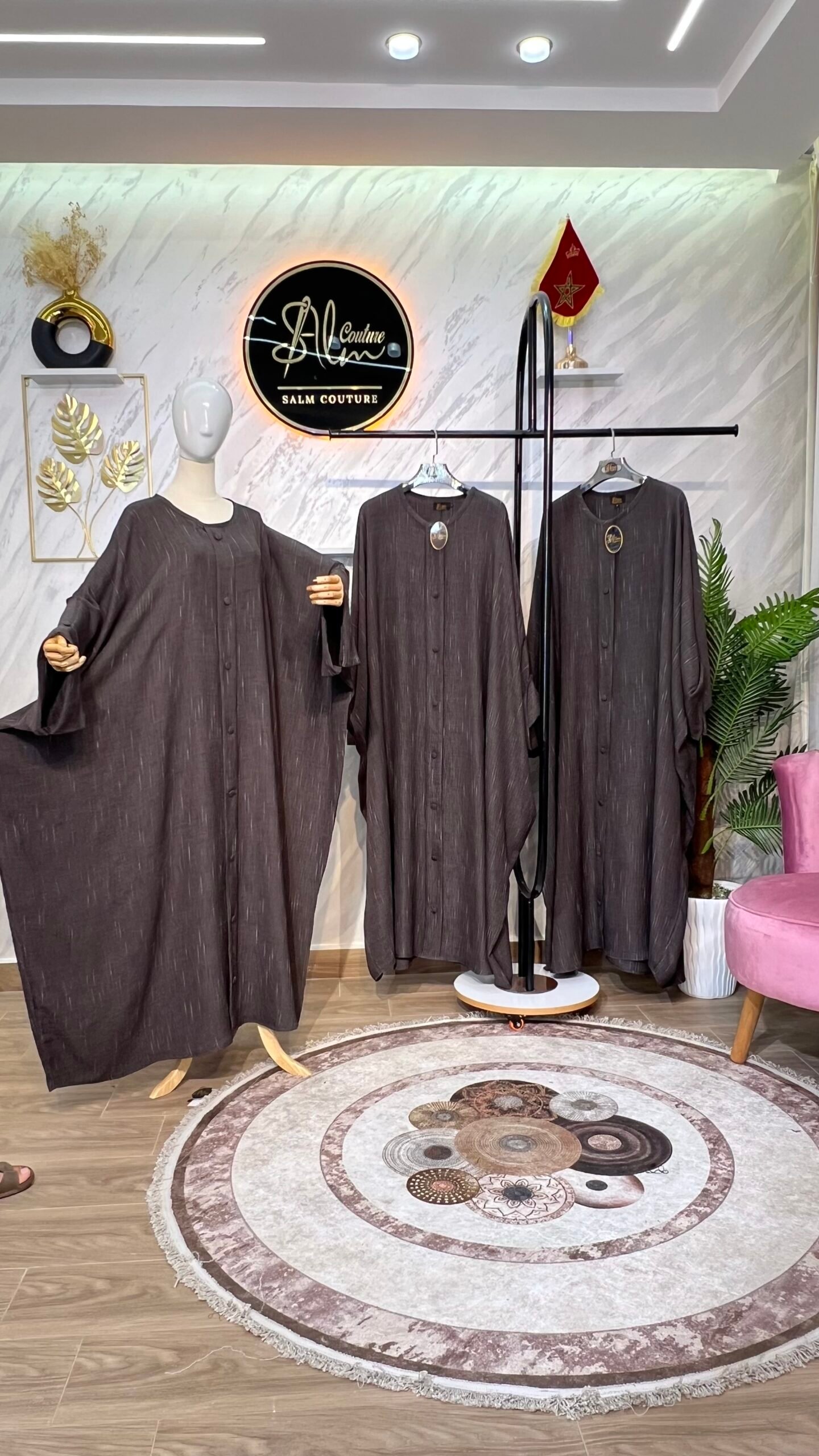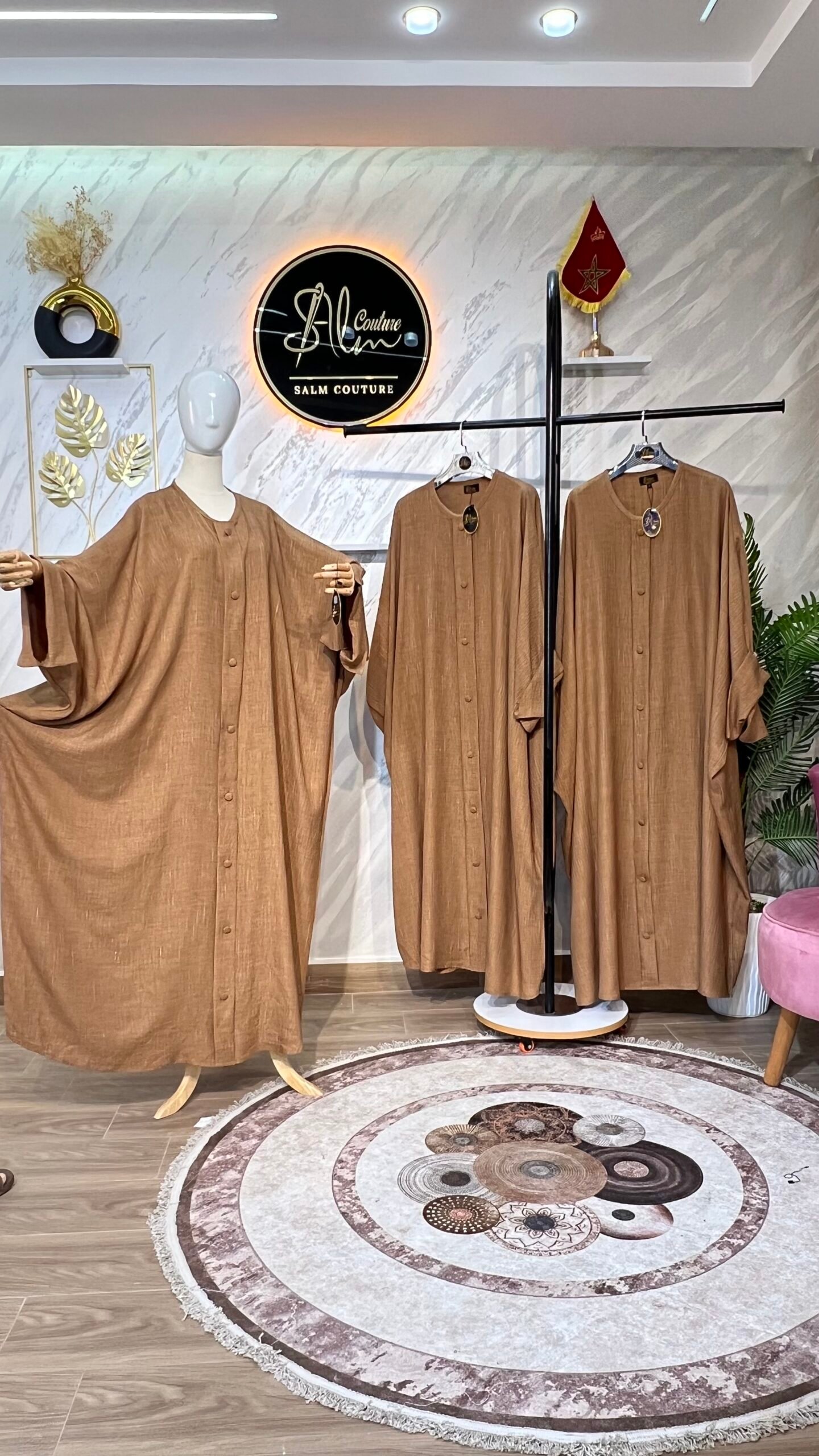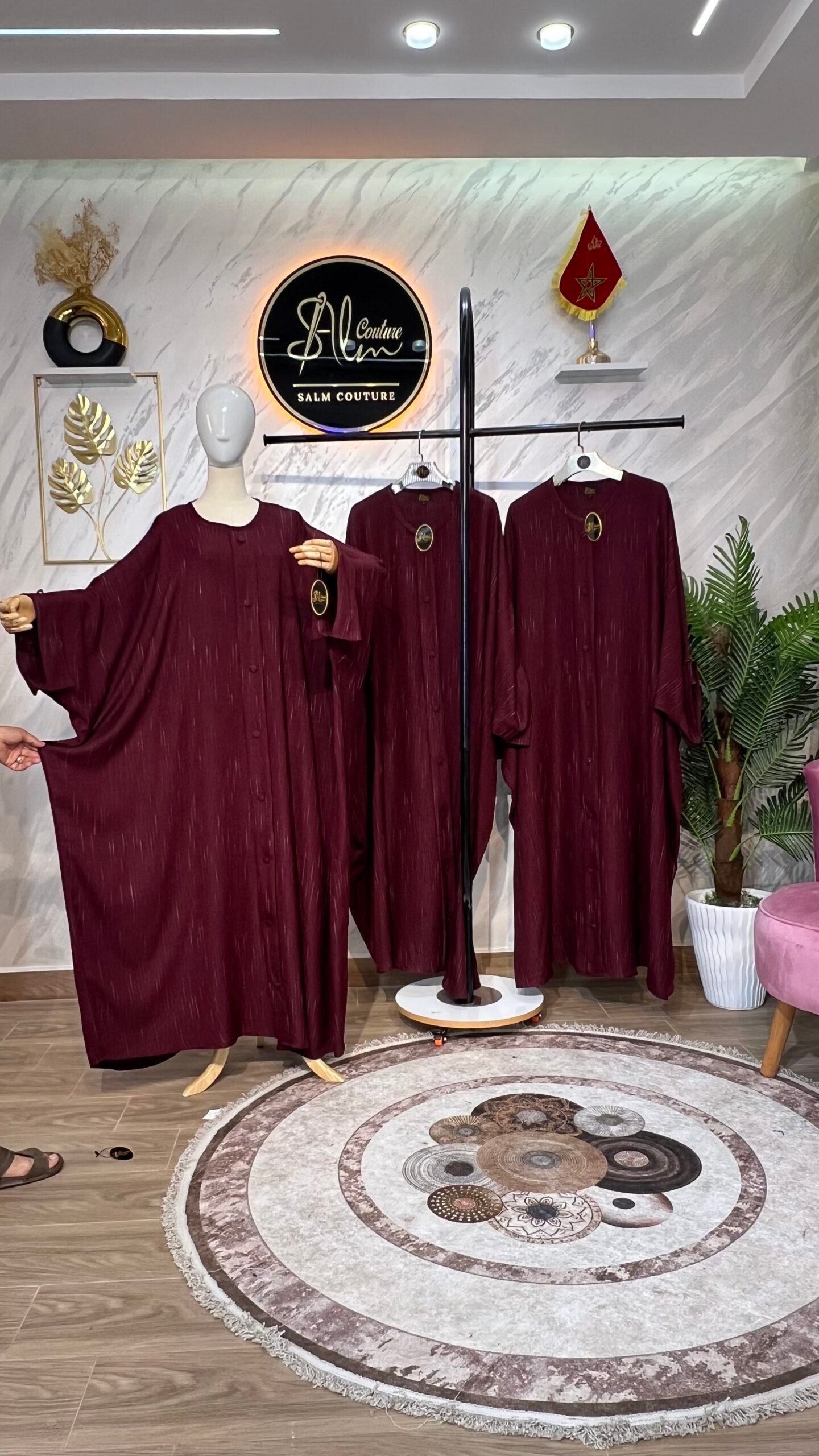 تنسدل كأجنحة الحرير على الجسد، مصنوعة من ثوب لولان المعروف بلمسته الناعمة وثقله الملكي.